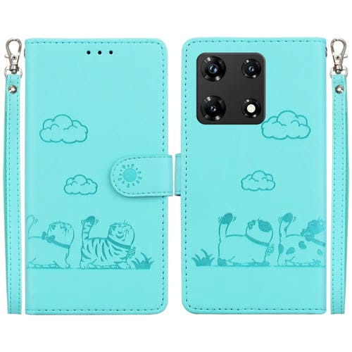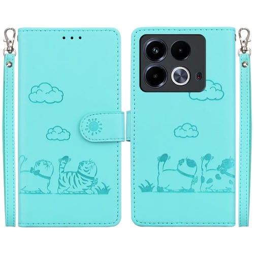 Funda de Cuero Rfid para Infinix Note 30I con Diseño de Gatos (Verde)