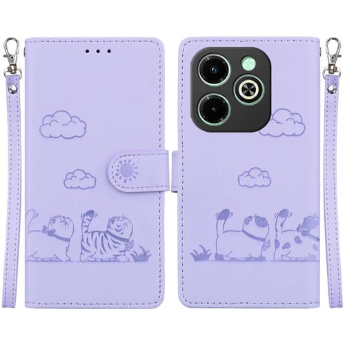 Funda de Cuero Rfid para Infinix Note 30I con Diseño de Gatos (Morado)