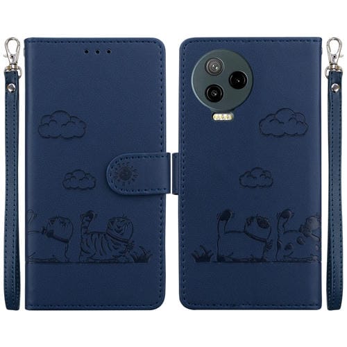 Funda de Cuero Rfid para Infinix Note 40 Pro 5G/4G con Diseño de Gatos (Azul)