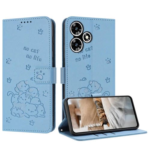 Funda de Cuero con Relieve de Gatito para Teléfono Infinix Hot 30 Play Nfc con Cordón (Azul)