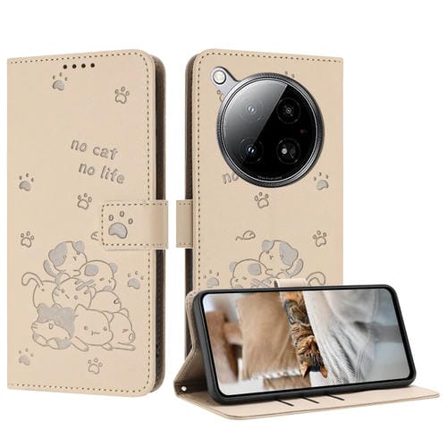 Funda de Cuero Infinix Zero 30 4G con Diseño de Gatito en Relieve y Cordón (Beige)