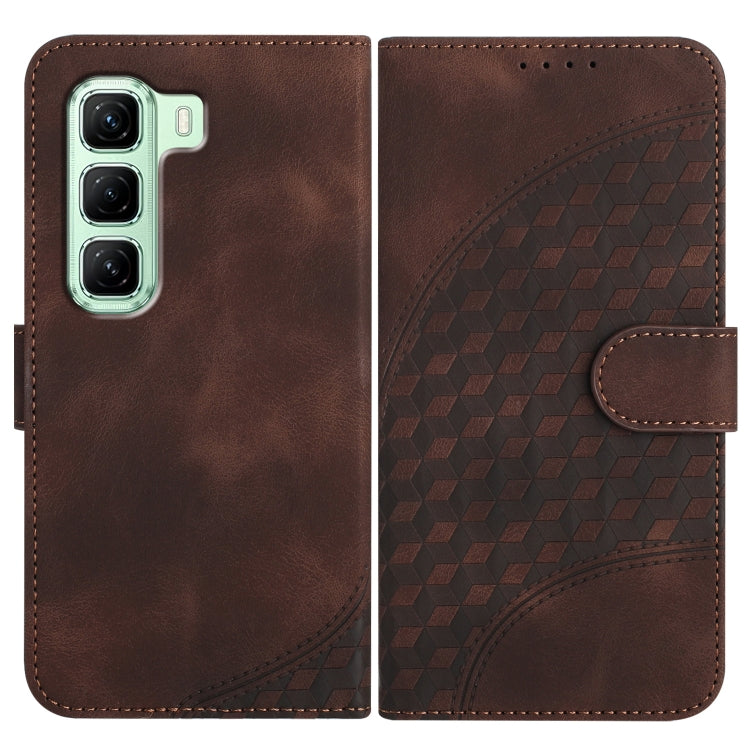 Funda de Cuero con Relieve Cabeza de Elefante para Infinix Hot 50 5G Yx0060 con Cordón (Café)
