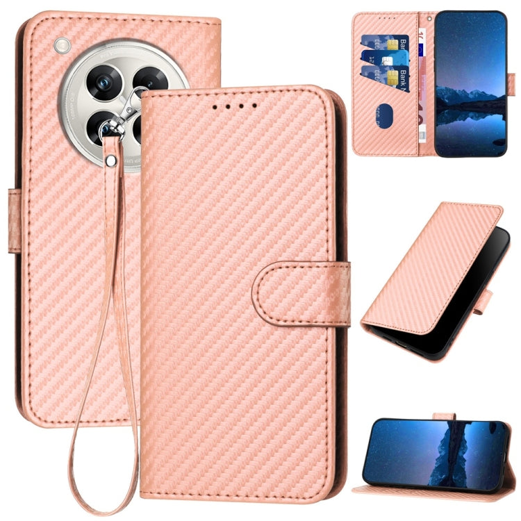 Funda de Cuero con Hebilla de Fibra de Carbono para Infinix Hot 50 5G YX0070 con Cordón (Rosa)