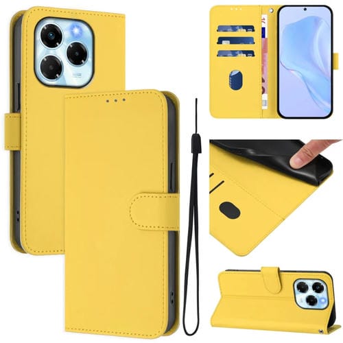 Funda de Cuero para Infinix Note 40 Pro 4G con Textura de Piel y Cordón (Amarillo Limón)