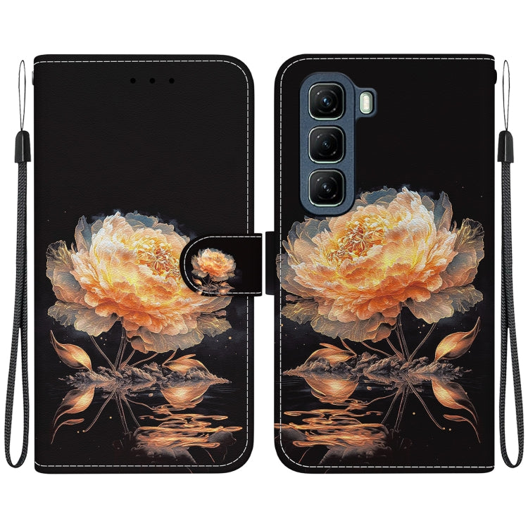 Funda de Cuero para Infinix Hot 50 5G con Dibujo de Colores y Textura de Cristal (Peonía Dorada)