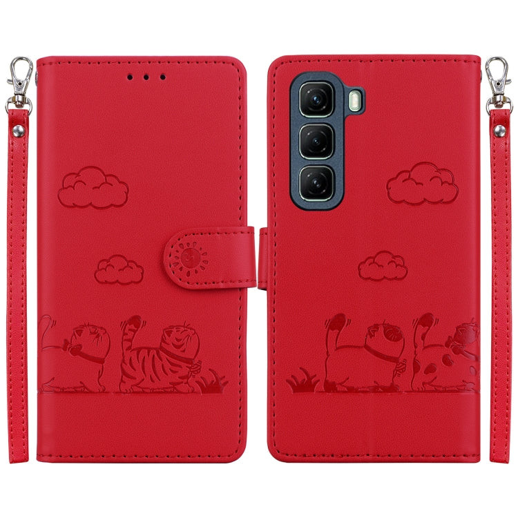 Funda de Cuero RFID para Infinix Hot 50 4G con Diseño de Gatos (Rojo)