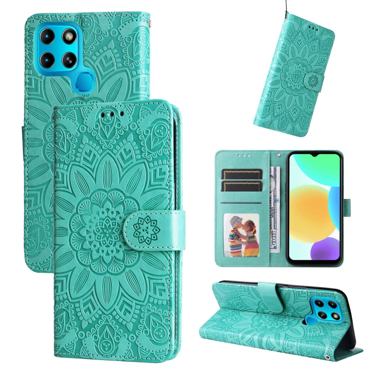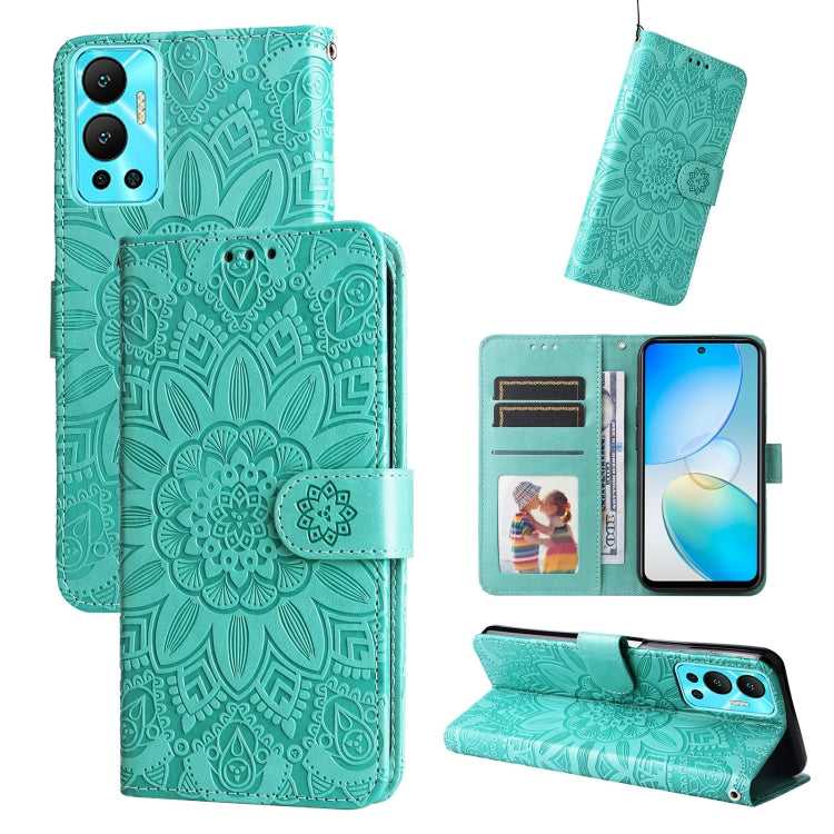 Estuche para Teléfono Infinix Hot 12 Play Cuero Estampado Girasol En Relieve (Verde)