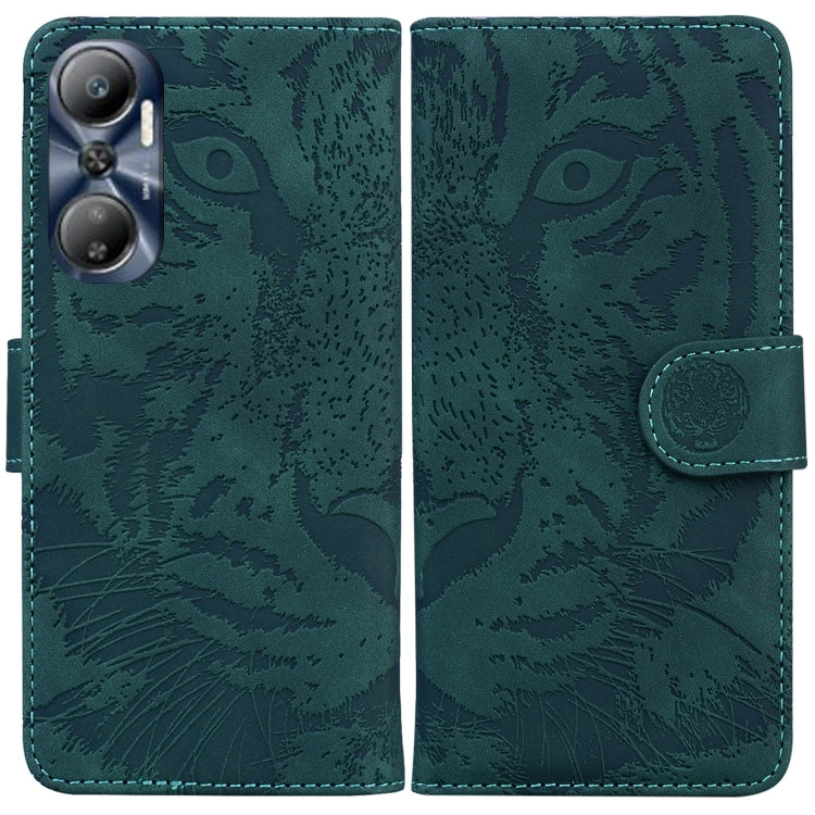 Funda de Cuero para Infinix Hot 20 5G con Estampado de Tigre en Relieve (Verde)