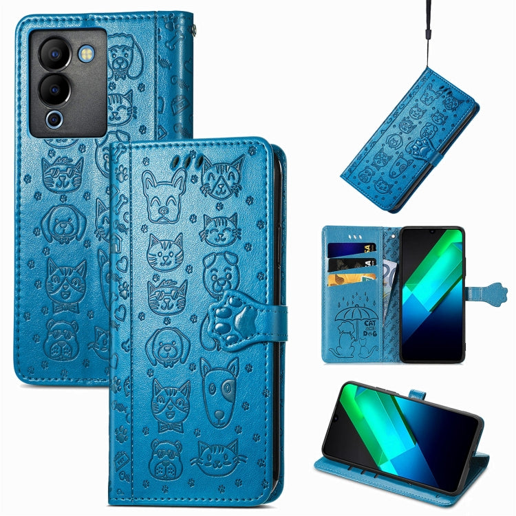 Funda de Cuero para Infinix Note 12 G96 con Relieve Cat And Dog (Azul)