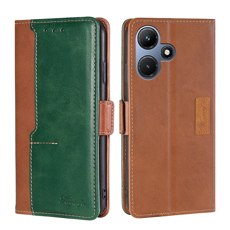 Funda de Cuero para Infinix Hot 30I 4G con Hebilla Lateral y Contraste (Marrón Oscuro + Dorado)