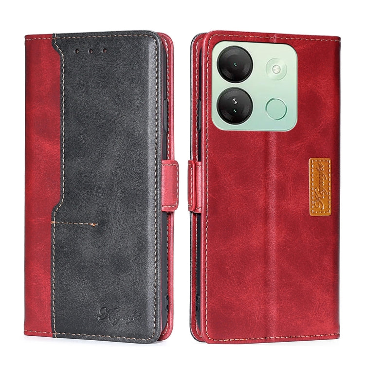 Funda de Cuero para Infinix Smart 7 HD con Hebilla Lateral y Color de Contraste (Rojo + Negro)