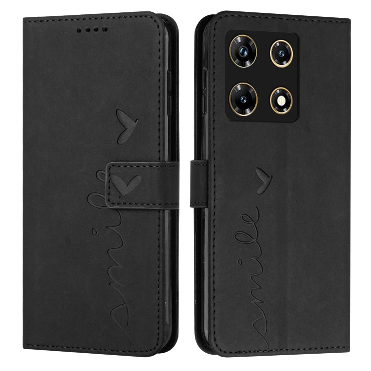 Funda de Cuero para Infinix Hot 30 Skin Feel con Patrón de Corazón (Negro)