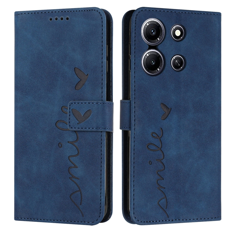 Funda de Cuero para Infinix Hot 30 Skin Feel con Patrón de Corazón (Azul)