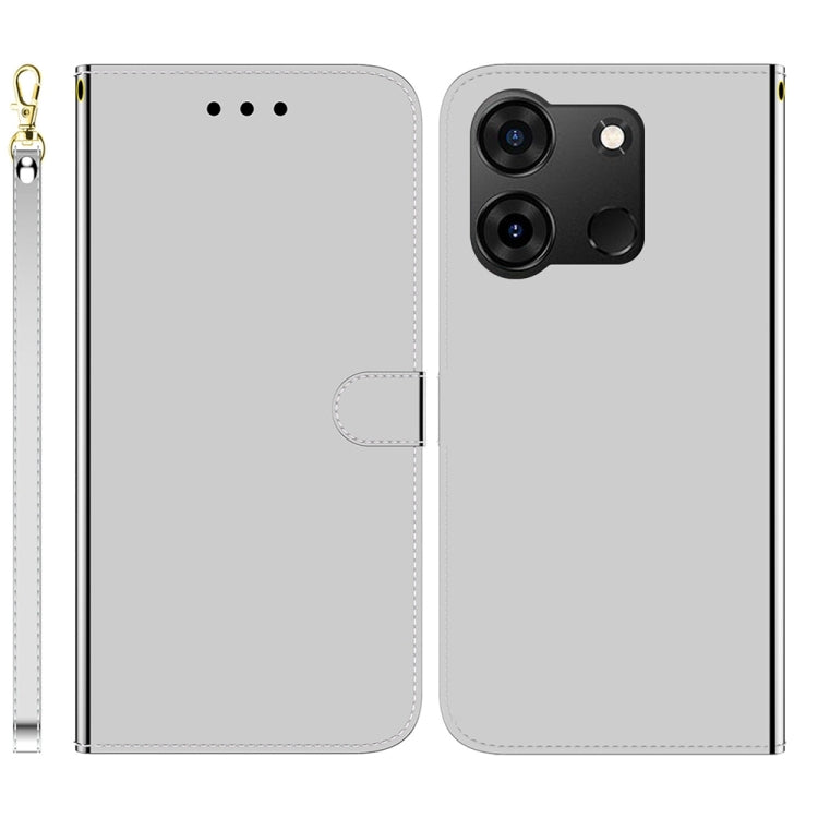 Estuche para Teléfono Infinix Hot 30 Cuero con Superficie de Espejo Imitado (Plata)