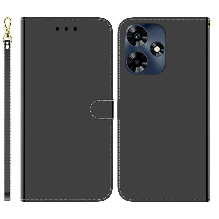 Estuche para Teléfono Infinix Hot 30 Cuero con Superficie de Espejo Imitado (Negro)