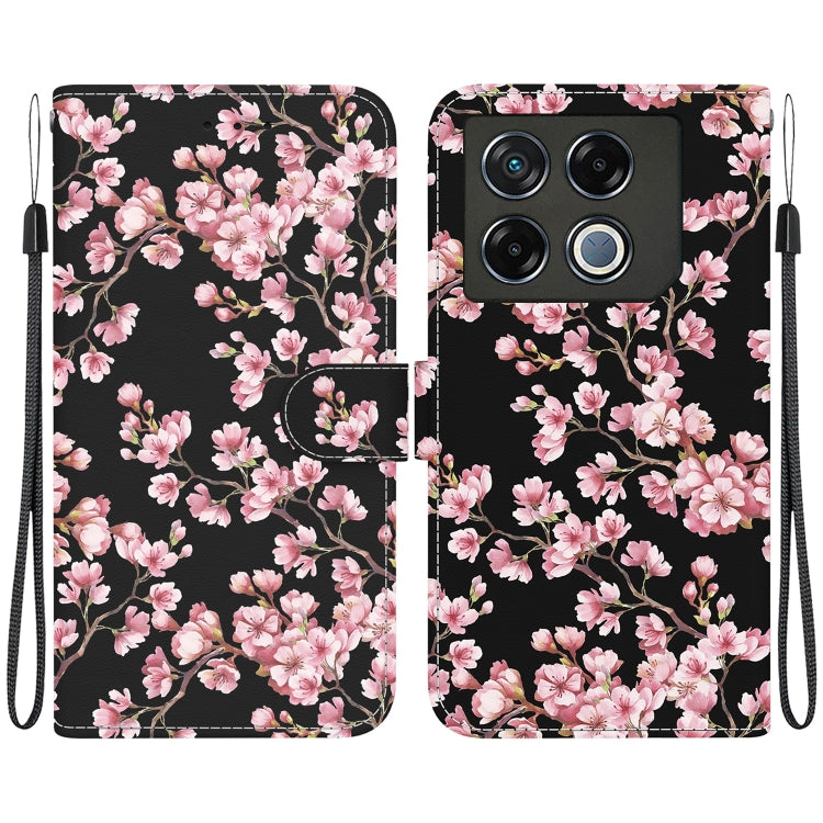 Funda de Cuero para Infinix Note 40 4G con Dibujo Coloreado y Textura de Cristal (Flores de Cerezo)