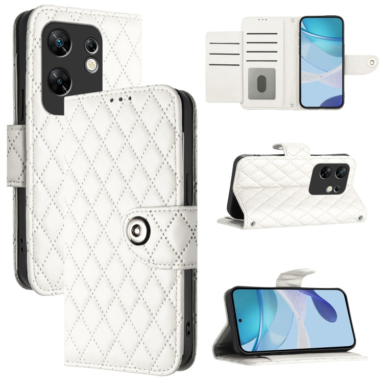 Funda de Cuero con Tapa y Textura Rómbica para Infinix Note 40 Pro 4G X6850 con Cordón (Blanco)