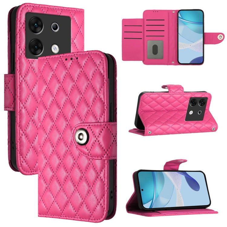 Funda para Infinix Note 40 5G de Cuero con Tapa Textura Rómbica y Cordón (Rojo Rosa)