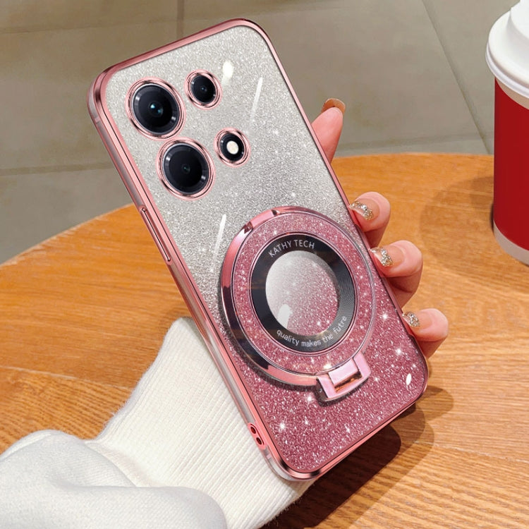 Funda de Teléfono TPU con Soporte Redondo y Purpurina Degradada para Infinix Hot 30 (Rosa)