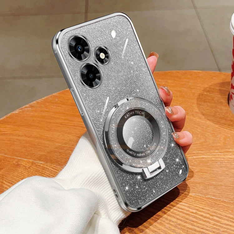 Funda de Teléfono TPU con Soporte Redondo y Purpurina Degradada para Infinix Hot 40I (Plateada)