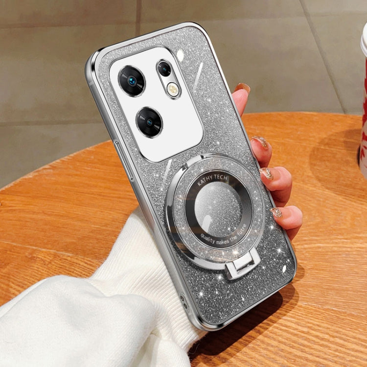 Funda de TPU con Soporte Redondo y Purpurina Degradada Chapada Vip para Infinix Note 30 (Plateada)