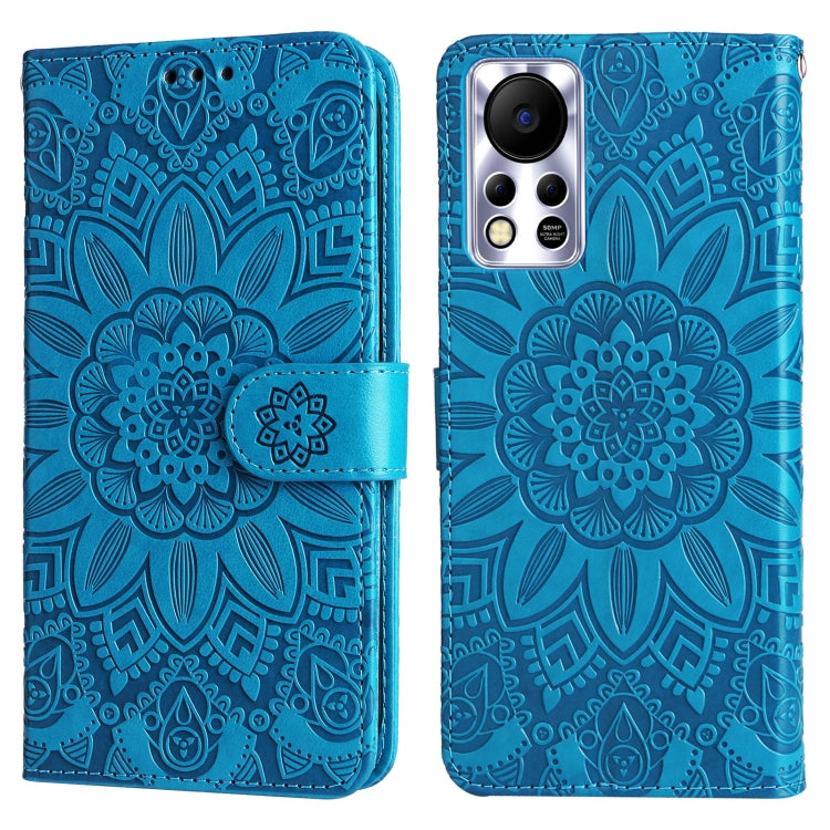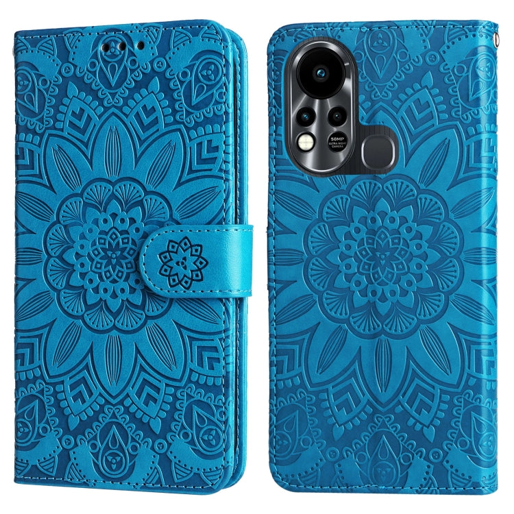 Estuche para Teléfono Infinix Hot 11S Nfc Cuero con Estampado de Girasol en Relieve (Azul)