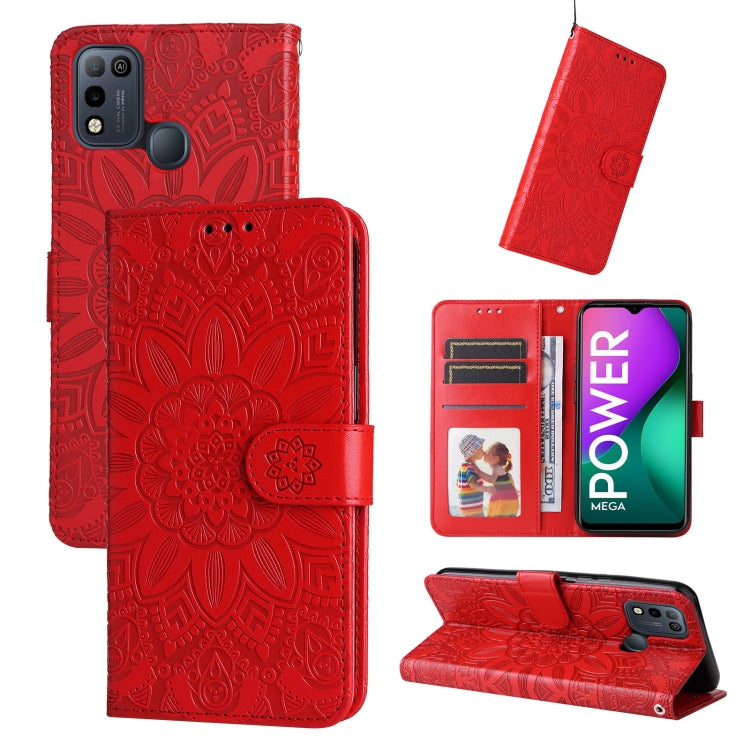 Estuche para Infinix Hot 11S Nfc de Cuero con Estampado de Girasol en Relieve (Rojo)