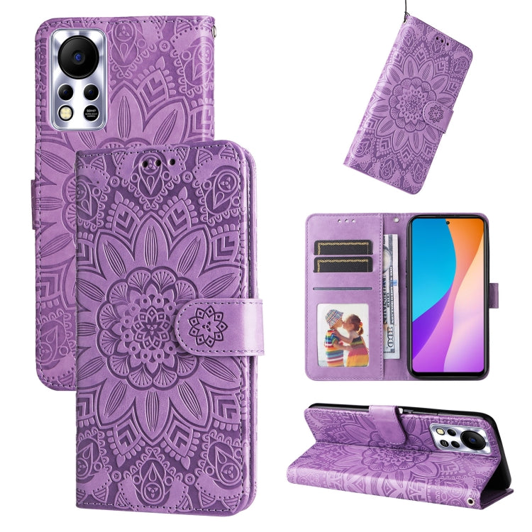 Estuche para Teléfono Infinix Hot 11 Cuero con Estampado de Girasol en Relieve (Púrpura)