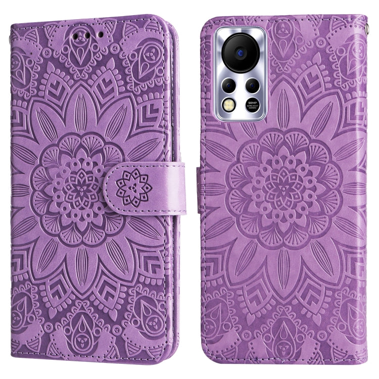 Estuche para Teléfono Infinix Hot 11S Nfc Cuero con Estampado de Girasol en Relieve (Púrpura)