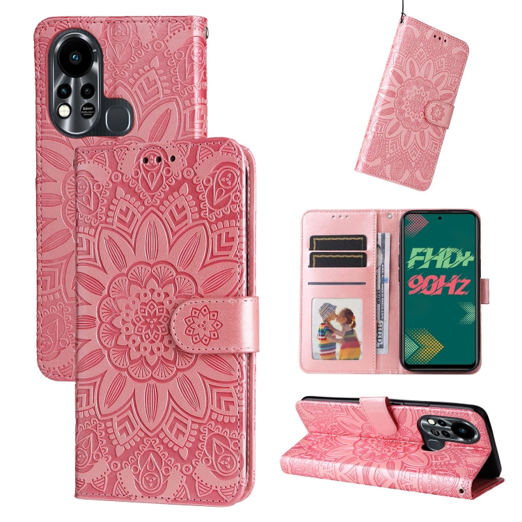 Estuche para Teléfono Infinix Hot 11S de Cuero con Estampado de Girasol en Relieve (Rosa)