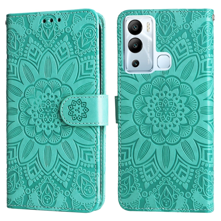 Estuche para Teléfono Infinix Hot 11S Nfc Cuero Estampado Girasol en Relieve (Verde)