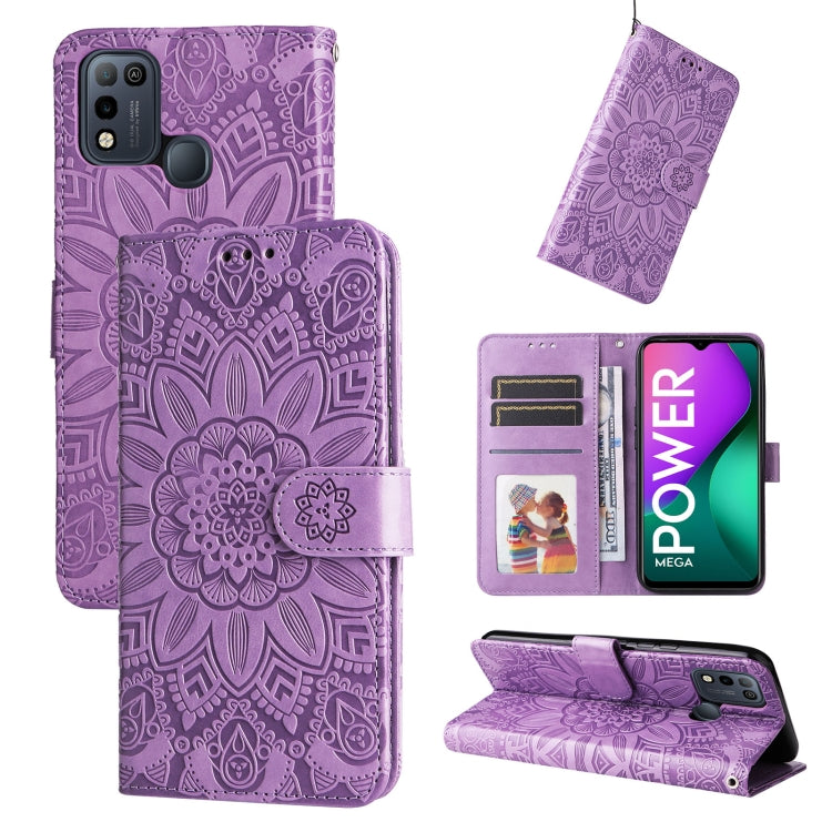 Estuche para Infinix Hot 11S de Cuero con Estampado de Girasol en Relieve (Púrpura)