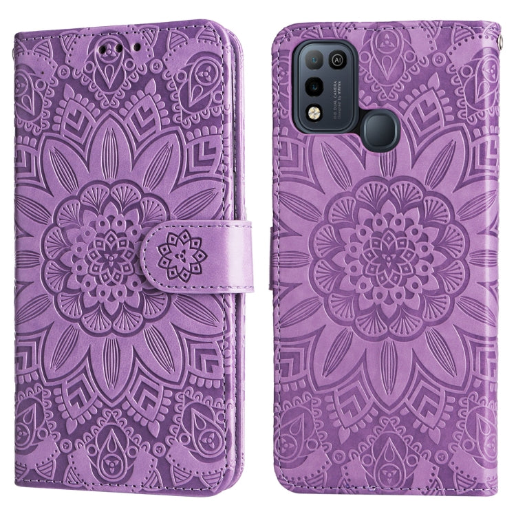 Estuche para Teléfono Infinix Smart 5 de Cuero con Estampado de Girasol en Relieve (Púrpura)