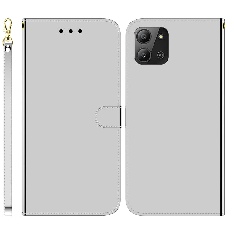 Funda de Cuero con Tapa Horizontal para Infinix Hot 11 (2022) Superficie Espejo (Plata)