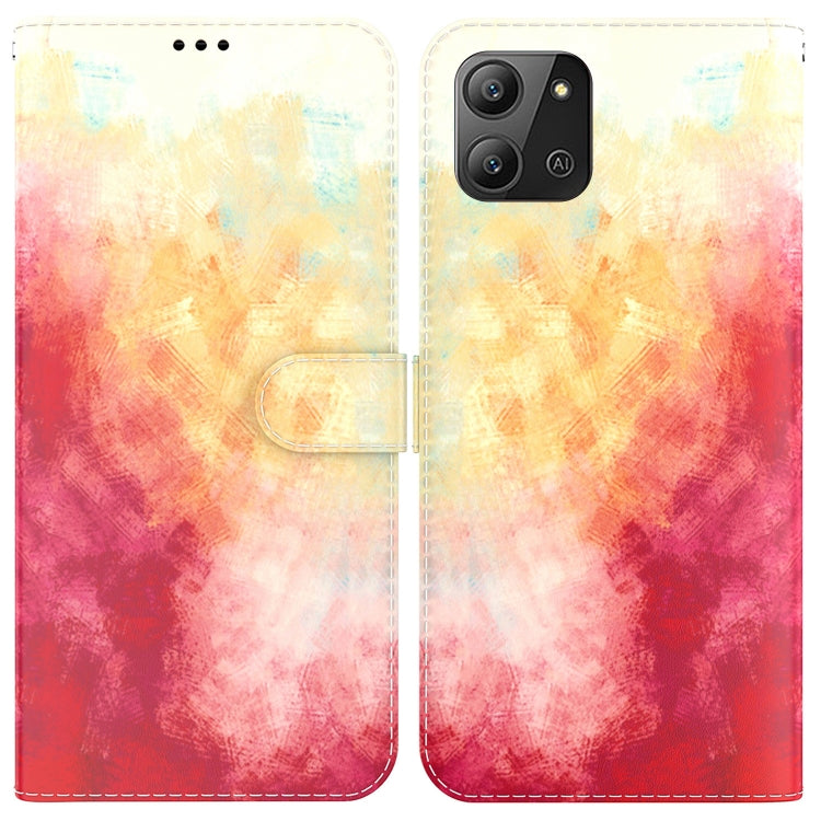 Funda de Cuero para Infinix Hot 11 (2022) con Tapa Horizontal y Patrón de Acuarela (Baya)