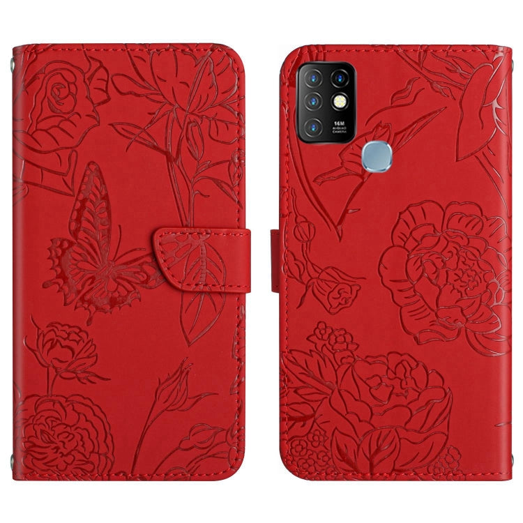 Funda de Cuero para Infinix Hot 10 Ht03 Skin Feel Butterfly con Tapa en Relieve (Rojo)