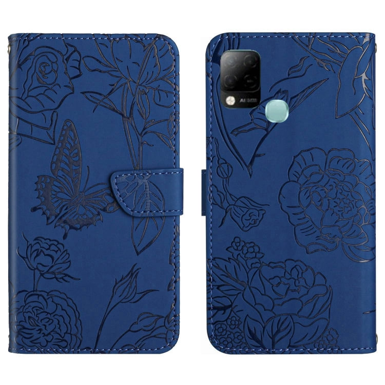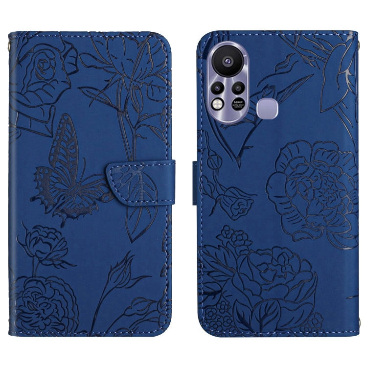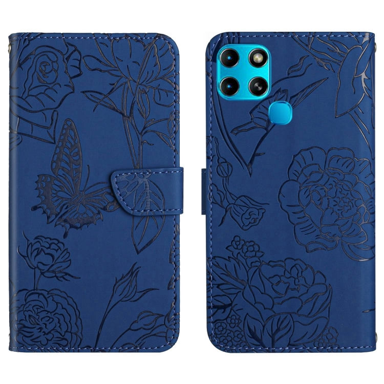 Funda de Cuero para Infinix Hot 11S Ht03 con Tapa en Relieve y Diseño Butterfly (Azul)
