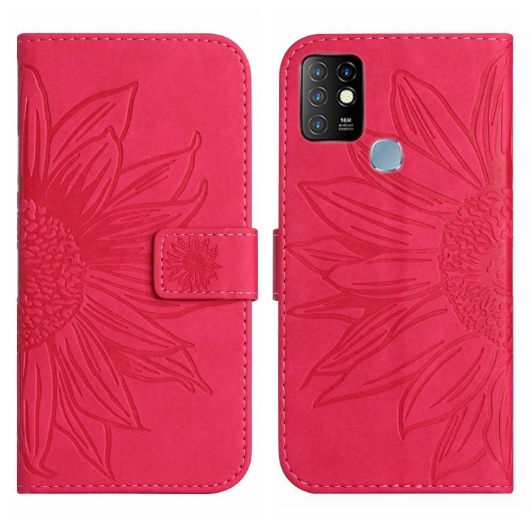 Funda de Cuero Flip para Infinix Hot 10 Skin Feel con Patrón Sun Flower y Cordón (Rose Red)