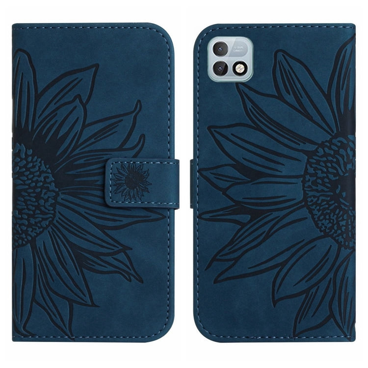 Funda Flip de Cuero para Infinix Hot 11 Skin Feel con Cordón y Estampado Sun Flower (Azul Tinta)