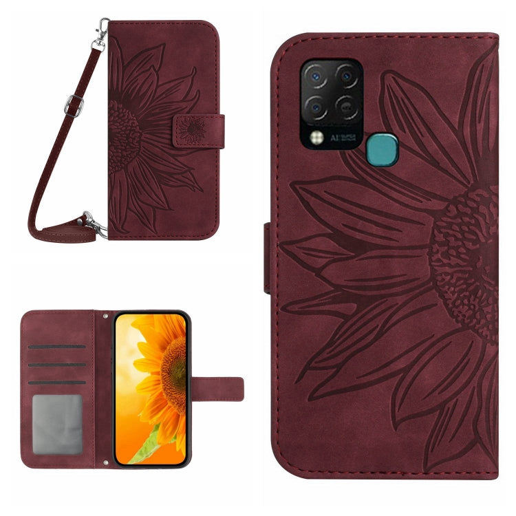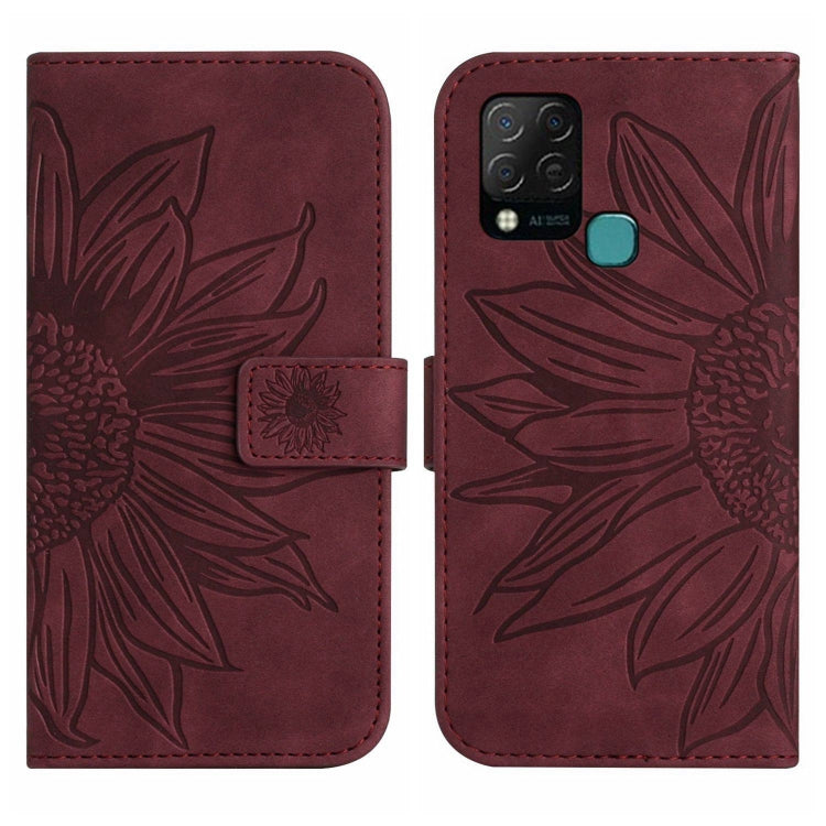 Funda de Cuero Flip para Infinix Hot 11 Skin Feel con Cordón y Patrón Sun Flower (Rojo Vino)