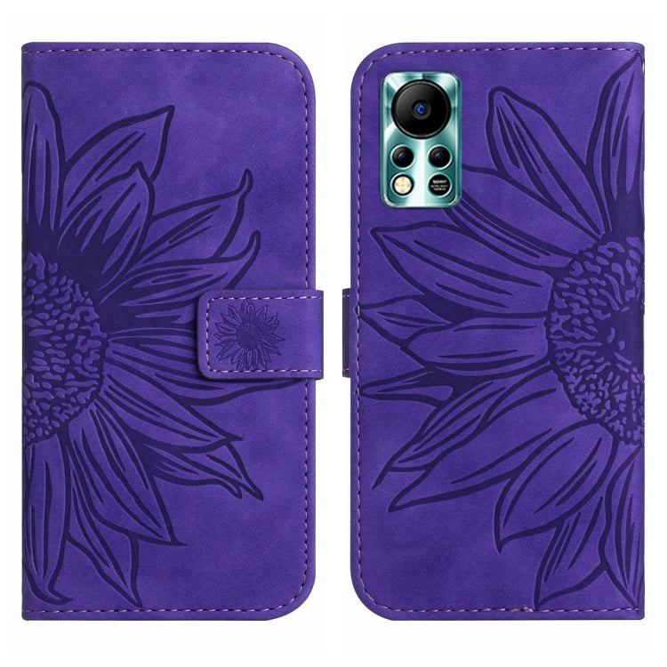 Funda Flip de Cuero para Infinix Hot 11 Skin Feel con Cordón y Patrón Sun Flower (Púrpura)