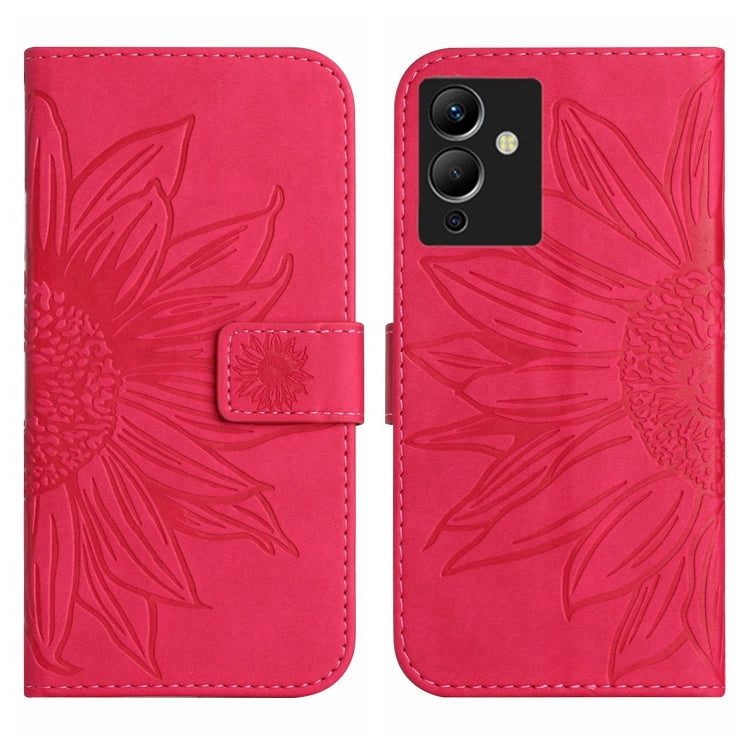 Funda de Cuero Flip para Infinix Note 12 G96 Skin Feel con Cordón y Diseño Sun Flower (Rose Red)