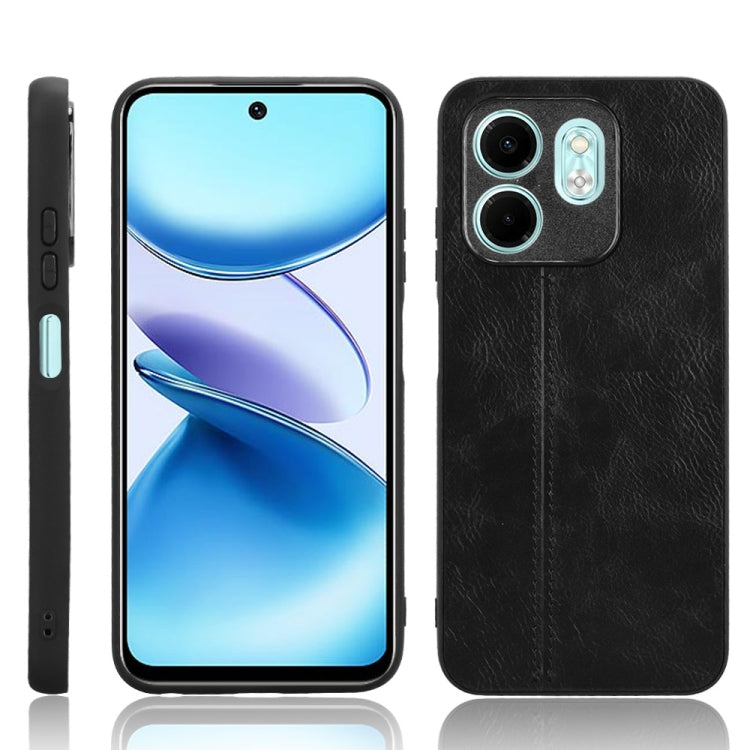Funda de Cuero con Textura de Becerro y Costuras para Infinix Hot 50I (Negro)