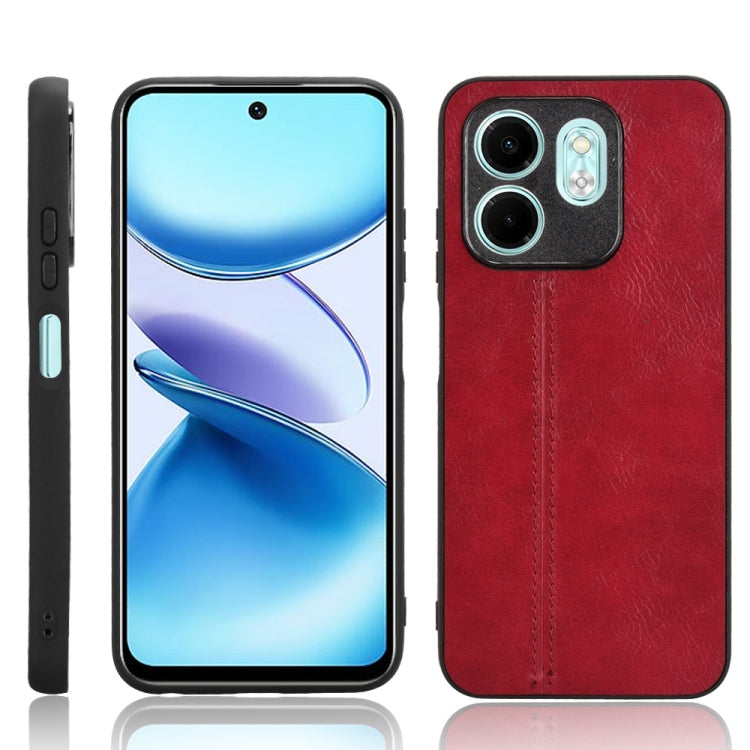 Funda de Cuero Textura Becerro con Costuras para Infinix Hot 50I (Rojo)