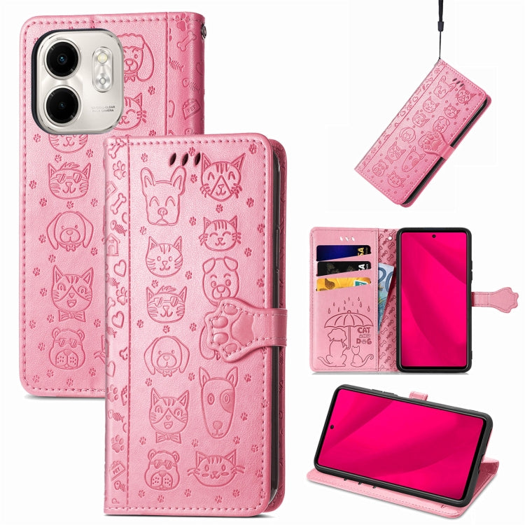 Funda de Piel con Relieve de Gato y Perro para Infinix Smart 9 (Rosa)
