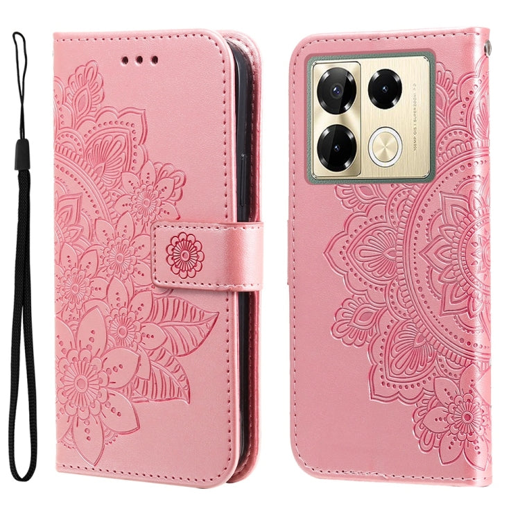 Funda de Cuero con Relieve de Flores de Siete Pétalos para Infinix Note 40 5G (Oro Rosa)