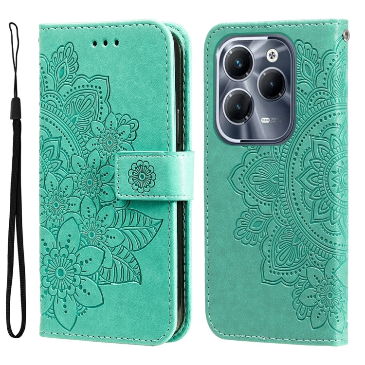 Funda de Cuero para Infinix Hot 40I con Estampado de Flores de Siete Pétalos (Verde)