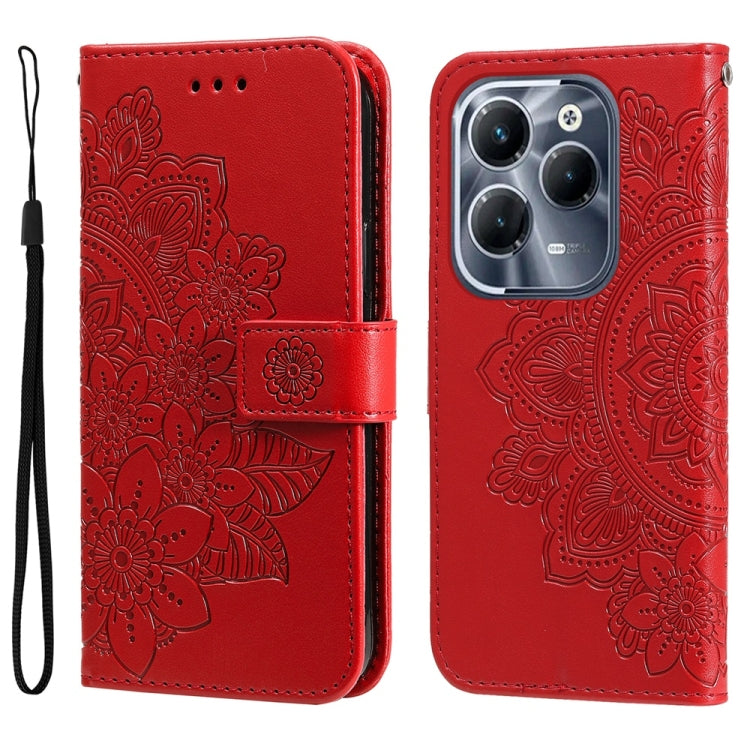 Funda de Cuero con Relieve de Flores Siete Pétalos para Infinix Hot 50I Smart 9 (Rojo)