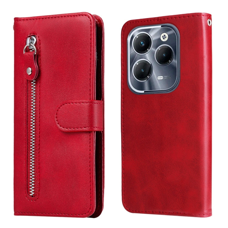 Funda de Cuero con Textura de Becerro y Cremallera para Infinix Hot 40 / Hot 40 Pro (Rojo)