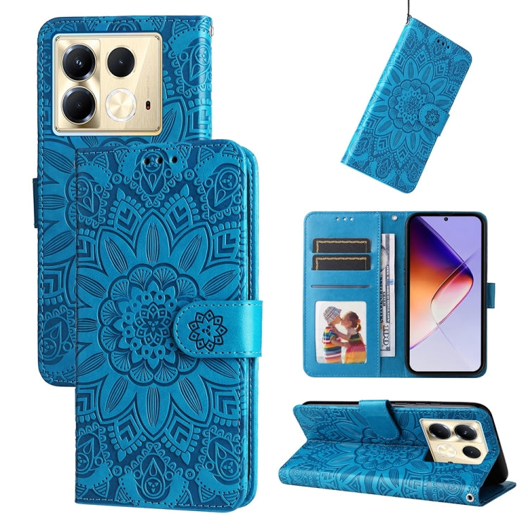 Funda de Cuero con Estampado de Girasoles en Relieve para Infinix Note 40 Pro 4G/5G/Pro+ (Azul)